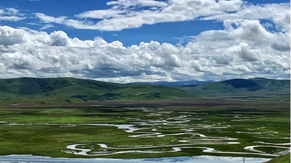 郭莽濕地位于甘肅省碌曲縣尕海鄉(xiāng)213國道旁,海潑3562米,是黃河最大支流洮河的發(fā)源地和水源涵養(yǎng)地,在黃河流域生態(tài)涵養(yǎng)和水源保護中具有重要意義。郭莽濕地是一個開放式免費景點,就在公路邊。草地上一條500多米長的木棧道通往觀景臺,站在觀景臺上,眼前彎曲的小河,傍水而居的藏族小村莊,風(fēng)輕日朗,白云朵朵,綠草如茵經(jīng)幡飄揚,好似一幅美麗的生態(tài)畫卷!