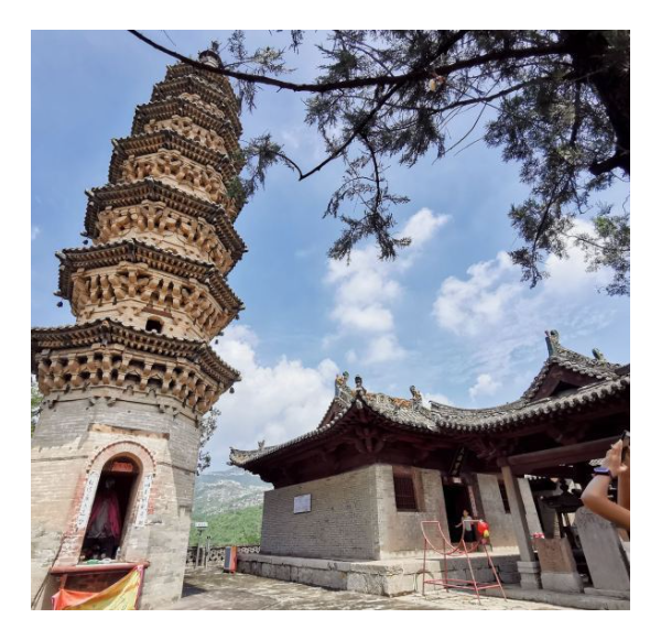 青龍寶塔:七層密檐式磚塔,高 17 米,塔身逐層收縮,輪廓挺拔秀麗,每層懸掛風(fēng)鈴。