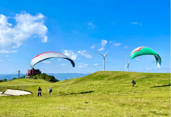 景區(qū)內(nèi)建有兩條高空滑索道,1號(hào)滑索長(zhǎng)372米,2號(hào)滑索長(zhǎng)280米?;鞯览盟鞯勒军c(diǎn)之間自然的地理落差建設(shè),在不同索道上可以觀賞到景區(qū)不同角度的草原美景。
