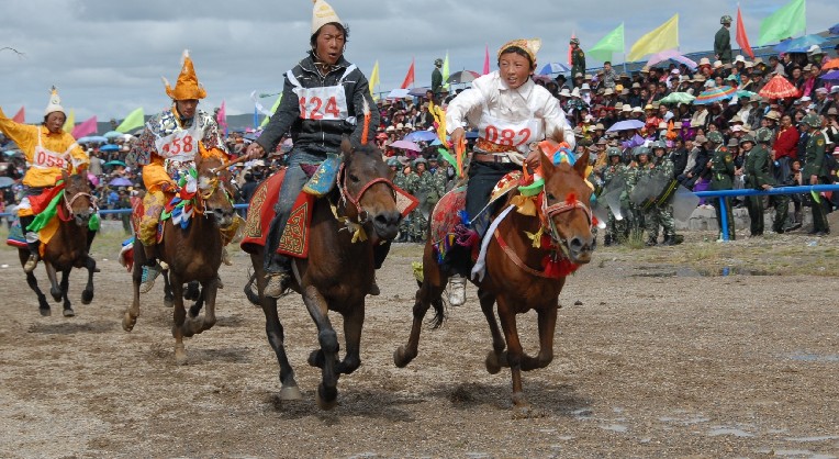 西藏那曲賽馬節(jié):世界屋脊的況世盛會(huì)。在所有民間傳承的藏族節(jié)日中,幾乎少不賽馬。藏民在原始的日常生活中培養(yǎng)起對(duì)馬的濃郁情感,那即是對(duì)馬的神圣化、神靈化,認(rèn)為馬能決定部族命運(yùn)和部族領(lǐng)袖。