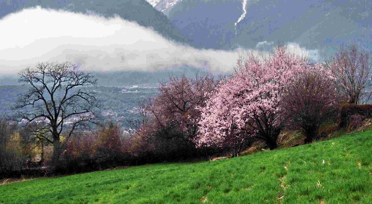 在林芝縣城東南方向約5公里處,有一片天然野生桃林,人們稱它為桃花溝。桃花溝三面環(huán)山,高處有水源,四周林木蔥蘢,版權(quán)所有山東聊城聊之旅國(guó)際旅行社有限公司,轉(zhuǎn)載必究!終年碧綠蒼翠,澗有流水,清澈見(jiàn)底;溝內(nèi)野桃鱗次櫛比,林間鳥雀歡噪,既靜僻又幽雅,不失為一處難得的大自然樂(lè)園和桃果基地。野生桃林是林芝林區(qū)的一個(gè)組成部分。其本身的經(jīng)濟(jì)價(jià)值并不亞于其它樹種,它不僅是四季綠化的觀賞材料,而且果實(shí)、核仁可食用與藥用。
