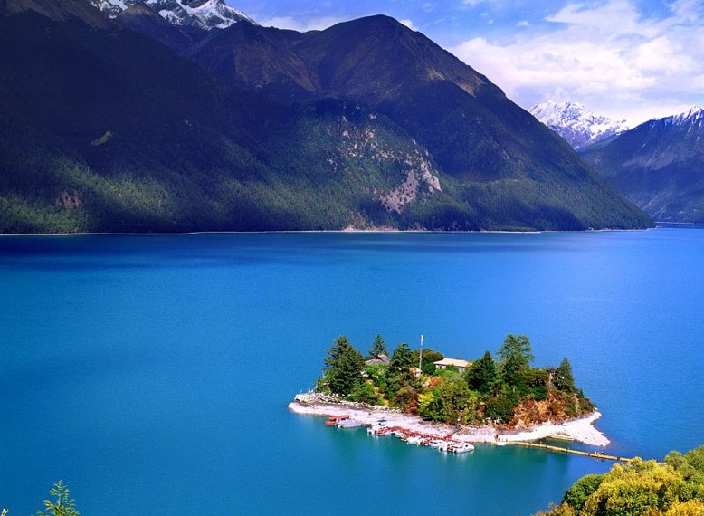錯(cuò)高在藏語(yǔ)中意為綠色的水,也稱為"巴松錯(cuò)"。它距工布江達(dá)縣50多公里,是紅教的著名神湖。湖形狀如鑲嵌在高峽深谷中的一輪新月,長(zhǎng)約12公里,湖寬幾百至數(shù)千米不等,最深處60多米,總面積6千多畝。湖水清澈見(jiàn)底,四周雪山倒映其中,黃鴨沙鷗白鶴等飛禽浮游湖面,湖中則是游魚如織,分外寧?kù)o。湖心扎西島上有錯(cuò)宗工巴寺,建于唐代末年。島上的礁石均雕刻成了別致的動(dòng)物形象以及佛像。錯(cuò)宗寺為土木結(jié)構(gòu),上下兩層,殿供強(qiáng)巴佛千手觀音和金童玉女。寺南有一株桃和松的連理樹,春天時(shí)桃花與青松相映,煞是好看。錯(cuò)宗工巴寺寺僧與信從們都乘獨(dú)木舟往來(lái)。每值春季,湖四周群花爛漫,雪峰陳列并倒影湖中,景色宜人至極。湖西北還有一5平方米大的巨石,大石中心有一可供一人鉆過(guò)的洞,據(jù)說(shuō)能鉆此洞可消災(zāi)除病。作為紅教著名的神糊。每年來(lái)此轉(zhuǎn)經(jīng)觀湖的群從非常多。