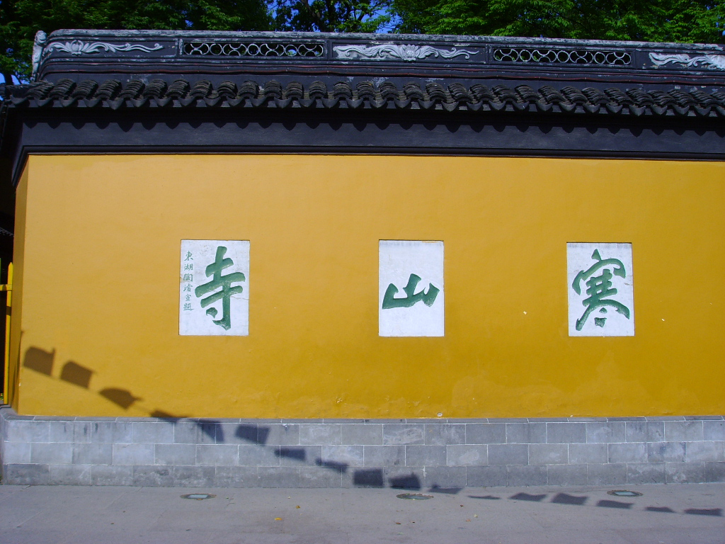 寒山寺(Hanshan Temple) 寒山寺在蘇州城西閶門外5公里外的楓橋鎮(zhèn),建于六朝時期的梁代天監(jiān)年間(公元502-519年),距今已有1400多年。原名“妙利普明塔院”。唐代貞觀年間,傳說當時的名僧寒山和拾得曾由天臺山來此住持,改名寒山寺。