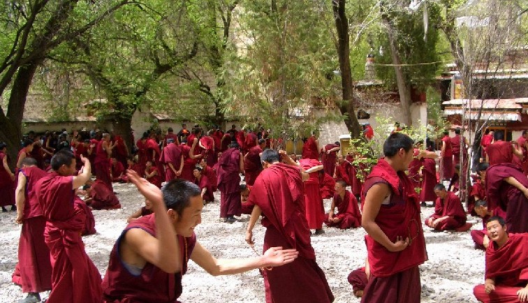 辯經(jīng),是一種佛學知識的討論,也可以說是喇嘛們的一種學習方式。色拉寺的僧人們每天有一次辨經(jīng)活動。這是一種富于挑戰(zhàn)性的辯論,雙方唇槍舌劍,言詞激烈,辯論者往往借助于各種手勢來增強辯論的力度,他們或擊掌催促對方盡快回答問題,或拉動佛珠表示借助佛的力量來戰(zhàn)勝對方。辯論場上的熱烈氣氛使游人也深受感染。