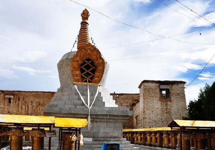 色拉寺的早期建筑。始建于1419年,為寺廟創(chuàng)建人釋迦也失所建。據(jù)說始建殿堂毀于雷擊,后于1761年由貢欽•強曲彭巴重建。面積1620平方米。經(jīng)堂中有長柱8根、短柱62根,主供釋邊牟尼銅像,列供于兩側的造像有未來佛、無量壽佛、藥師佛、妙音菩薩、宗喀巴師徒三尊、第七世菩薩、宗喀巴師徒三尊、第七世達賴、第三代策默林活佛(貢覺丹貝堅贊)、帕邦喀活佛等銅像。