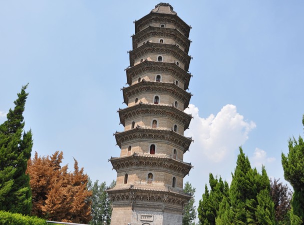 此塔建于明萬(wàn)歷三十九年,塔高61米,九級(jí)八面。樓閣式,通體近垂直,仿木結(jié)構(gòu),剎頂呈將軍盔形,屬省內(nèi)僅見(jiàn),基座八面,每面長(zhǎng)4.9米,底面積為186平方米,其空間面積可達(dá)7000方米.外檐磚木結(jié)構(gòu)。版權(quán)所有山東聊城聊之旅國(guó)際旅行社有限公司,轉(zhuǎn)載必究!檐為陶質(zhì)仿木出挑斗拱。轉(zhuǎn)角斗拱下垂陶質(zhì)蓮花垂樸。斗拱下部攘嵌陶質(zhì)“阿彌陀佛”四字:門(mén)楣上鐫刻“舍利寶塔”匹字:進(jìn)入塔室,各層辟有轉(zhuǎn)角形石質(zhì)梯道,可迂回逐層攀登至頂層。各層為穹隆頂,頂上拖龍骨架,地面平托全絲楠木樓板、平面鋪青磚,每層辟八門(mén),四明四暗。各層塔心室內(nèi)皆有刻石,畫(huà)像鑲嵌壁上,寶塔中心部位原有金絲楠木通天柱,上至塔剎下直落地宮,以承托每層平面負(fù)荷,此作法當(dāng)屬宋代遺風(fēng)。