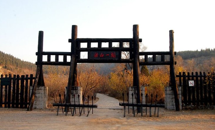 梁山有三關(guān)六寨之說,梁山一關(guān)為木質(zhì)結(jié)構(gòu),柵欄形式,有濃郁的山寨特 點(diǎn),也是進(jìn)入梁山的第一道屏障,根據(jù)《水滸傳》第七十回描寫,第一關(guān)由解珍、解寶兩頭領(lǐng)駐守在此。壁壘森嚴(yán),雄渾壯觀,后多次遭到破壞,2002年又進(jìn)行了修復(fù)。當(dāng)我們走進(jìn)這條雜草陳槐,曲折逶迤的古寨道,就會(huì)從這荒野的氣息中,領(lǐng)略出當(dāng)年好漢嘯聚山林,八方共域,異姓一家,豪放不羈,快活灑脫的綠林生活情景。