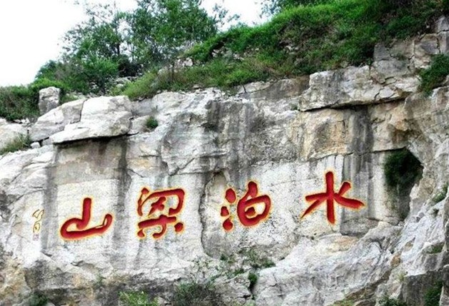梁山北麓登山處旁邊的懸崖峭壁上有眾多摩崖石刻,集中了當(dāng)代書法大家的上乘之作,如舒同先生的“水泊梁山”,費(fèi)新我的“草莽名山”,范曾先生的“水泊梁山記”,成為上梁山的重要景觀,其右側(cè)有一座魯智深、武松石雕,稱“雙雄鎮(zhèn)關(guān)”,把守著入關(guān)山隘。