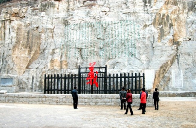 《水泊梁山記》是著名書(shū)畫(huà)大師范曾2002年專(zhuān)為水泊梁山風(fēng)景區(qū)撰寫(xiě)。先生懷著對(duì)英雄故里的一腔深情,慷慨揮毫、步其先人范仲淹《岳陽(yáng)樓記》韻,全文368字,描述了水泊梁山河岳闊峻、草木蕭森的雄奇景象。《水泊梁山記》大型摩崖石刻,通高7米、長(zhǎng)14米,距地面10余米,單字最大55厘米見(jiàn)方,最小字30厘米見(jiàn)方,通篇368字占地近100平方米,氣勢(shì)恢弘、蔚為大觀,形成了南有《岳陽(yáng)樓記》、北有《水泊梁山記》的文化格局。為旅游勝地水泊梁山再添景觀,現(xiàn)為水泊梁山風(fēng)景區(qū)的主要景點(diǎn)之一。與梁山粗獷豪放的山體及周?chē)h(huán)境交融,深化了景區(qū)的水滸文化內(nèi)涵,成為進(jìn)入梁山風(fēng)景區(qū)山寨景區(qū)的標(biāo)志性景觀,其所在廣場(chǎng),亦成為在梁山舉行的與水滸、旅游有關(guān)的大型集會(huì)的場(chǎng)所之一。