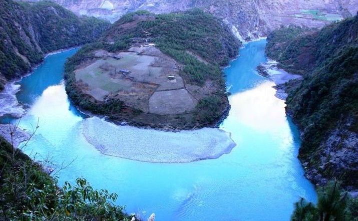 獨(dú)龍江源于西藏察隅縣,這條異常洶涌的河流緊貼橫斷山脈主體的西北麓,被陡峭的高山所圍堵。東面是5000 多米高的高黎貢山(傈僳語稱曲果),西面有同緬甸毗鄰的4000多米高的擔(dān)當(dāng)力卡山。獨(dú)龍江由上游克勞洛河與麻比洛河匯合后從迪布里地方流入貢山縣,到茂頂又轉(zhuǎn)向西流,過馬庫入緬甸,匯入恩梅開江。在境內(nèi)流長90多公里,流域面積1947平方公里。整個獨(dú)龍江猶如一條青色的長龍,奔騰咆哮在 云霧繚繞的群山之中。整個河谷地形復(fù)雜,從高處望,河谷的山巒綿延起伏林海茫茫蔚為壯觀。從山肢到山巔氣候溫度相差很大,平時沿江行趟,揮汗如雨,行至山腰就有了涼意,待到山頂就是寒氣襲人了。獨(dú)龍江水落差很大,遠(yuǎn)望江水上游,有如從天而降之感。