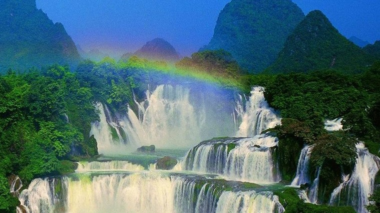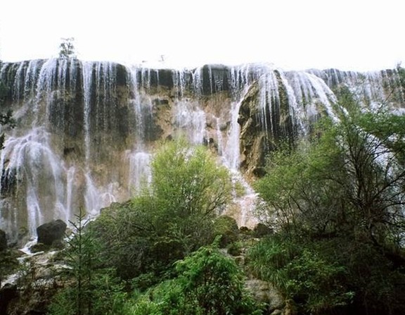 凌空而瀉的瀑布,象銀河倒懸,墜至半空,忽被峭石攔腰斬?cái)?,剎時(shí)雪浪飛濺,宛如千萬(wàn)串?dāng)嗑€的珍珠,紛紛揚(yáng)揚(yáng),沿懸立千紉的絕壁陡然下墜,落進(jìn)不見(jiàn)底的深淵,發(fā)出驚天動(dòng)地的狂嘯。而河水卻象兇猛的野獸在咆哮,發(fā)出震耳欲聾的吼聲,仿佛整個(gè)峽谷在顫動(dòng)。每到日落西山,“老虎嘴”彩虹繚繞,雪峰頂上緋紅一片,迷離變幻,奇勝不可名狀。