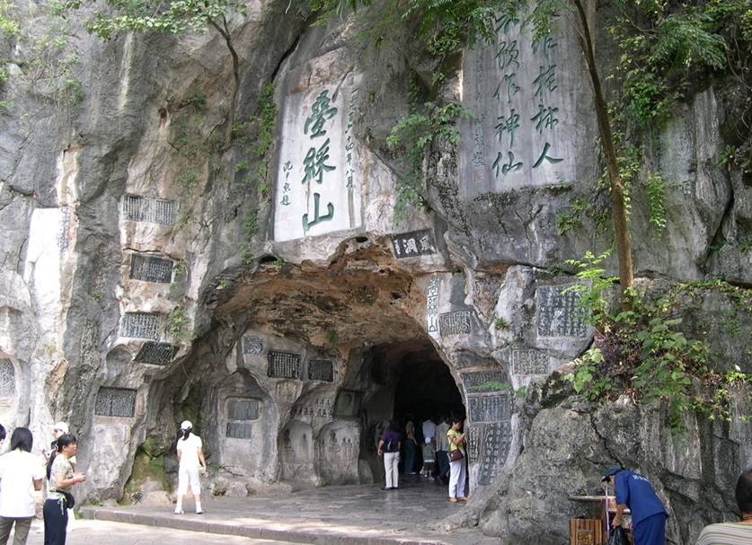 風洞是疊彩山明月峰山腰一奇洞。 這是一個四季生風的洞,因而得名"風洞"。此洞,南北對穿,中間狹小,僅通一人,形成前后兩個洞,南北開敞,呈葫蘆狀,全長20米,最寬9.2米,最高5米。風洞原是一條地下古河道,兩頭大中間小,所處地勢高。北接“湘桂走廊”,南迎駕橋嶺與海洋山之間的“峽道”,形成對流。隨著季節(jié)變換,來風有清、和、暖、冷之別。因終年“風迎更風送”,人們往往把這里稱作“清涼世界”。