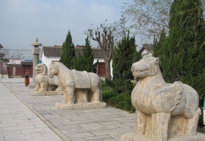 曹植(公元192~232年)字子建,“建安七子”之一,他所作的《七步詩》至今仍為世人廣為傳誦。曹植墓始建于魏太和七年(公元233年),1981年和1985年曾先后進行過修葺。墓冢依山而建,以磚石磊筑而成,占地面積約1200余畝。墓室為前堂后室的磚室墓,前堂面積約17平方米,后室面積約4平方米。墓壁均以青磚錯縫平砌而成。前堂后室之間辟有門,并以磚封護。墓內(nèi)發(fā)現(xiàn)有石圭、石璧、青玉璜、瑪瑙泡、云母片以及陶器等隨葬品共132件。