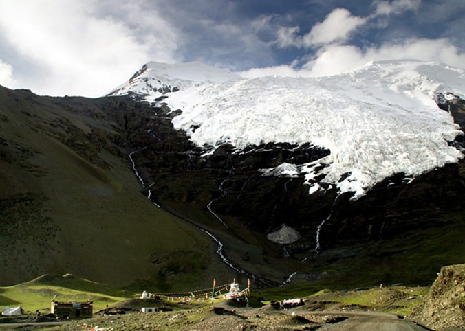 從羊卓雍錯出來后,跨越4330米的斯米拉山口后就來到了卡若拉冰川的冰舌下。冰舌前沿海拔5560米,觀看卡若拉冰川的地方海拔約有5400米,在山口北面5600米左右的地帶,屬寧金抗沙峰冰川向南漂移后形成的懸冰川。