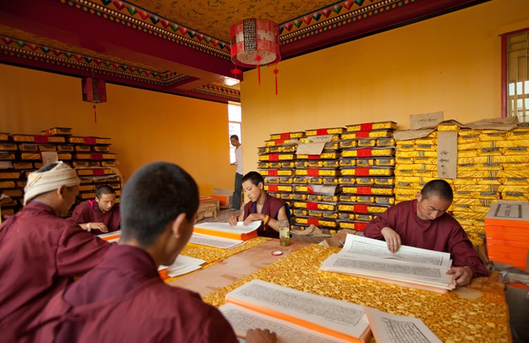 納塘寺設有著名的“納塘印經(jīng)院”,它是西藏最早的一座印經(jīng)院。據(jù)古代藏文史籍記載:元初武宗至大年間(1308~1311),國師尊巴絳央委托前藏歐巴•洛賽益西等人編纂藏文《在藏經(jīng)》(即:《甘珠爾》和《丹珠爾》),并派洛賽益西駐納塘寺。洛賽益西與譯師索南沃賽、若南秋崩一起將藏區(qū)所有的《甘珠爾》、《丹珠爾》各種抄本搜集齊全,整理編輯了藏文《大藏經(jīng)》抄本,存放于納塘寺。