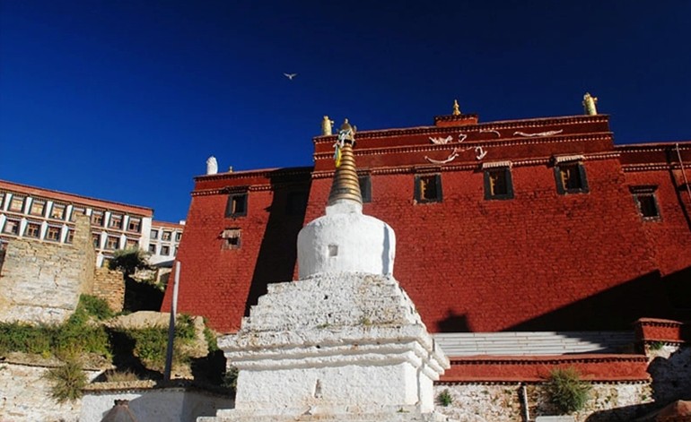 寺院西北側(cè)為竹康(修行殿),面積40多平方米。主要供奉護法神和一座達哇堅贊贊銅鍍金小靈塔,塔內(nèi)珍藏著達哇堅贊的手、足及其使用過的法器。
