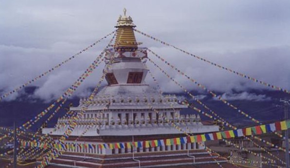 通追拉康東側(cè)原有4個靈塔殿,殿內(nèi)均供有一座靈塔,“文革”時被毀。現(xiàn)已修復(fù)了江袞•達哇堅贊的靈塔殿及殿內(nèi)的靈塔,面積40多平方米。四川阿壩州為該殿送來了千尊頓巴辛繞鍍金泥塑佛像。據(jù)說新修復(fù)的通追拉刃和靈塔殿的靈塔內(nèi)都保存有達哇堅贊的舍利,甚為珍貴。