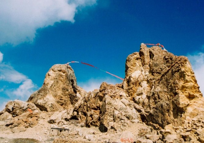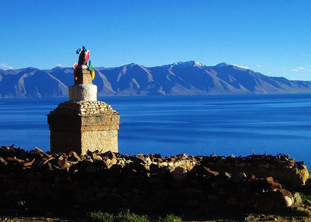 當(dāng)惹雍錯(cuò)被群山簇?fù)恚习哆_(dá)爾果山東側(cè)有一缺口。據(jù)傳當(dāng)惹雍錯(cuò)當(dāng)初是個(gè)魔鬼湖,后來象雄第一代王子也即是苯教的締造者敦巴辛繞制服了湖中的魔鬼,成為了神湖。達(dá)爾果山一列有七峰,峰頂終年白雪覆蓋,如七個(gè)戴了白帽的巨人并排站立忠實(shí)地守護(hù)著當(dāng)惹雍錯(cuò)。這里山光水色簡直就是圣景,它和當(dāng)惹雍錯(cuò)—起被人們奉為苯教的神山圣湖,其地位與佛教所認(rèn)為的世界中心的崗仁波齊和瑪旁雍錯(cuò)身價(jià)相等,且傳說湖底是相通的。