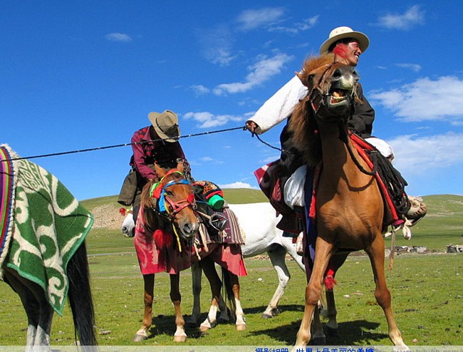 最為引人注目的是牧民的節(jié)日盛裝,特別是少女和中年婦女的穿著,她們大多著華麗昂貴的藏袍,頭上、頸上、手上、腰上到處掛滿了飾品,走起路來叮當(dāng)作響。尤其是在一年一度熱鬧非凡的恰青賽馬會(huì)上,整個(gè)羌塘草原的驍勇與彪悍完完全全地展現(xiàn)在白云和藍(lán)天之下,那像珍珠一樣撒落在草原上的頂頂帳篷,那像金子般清脆亮麗的陣陣歌聲,以及格薩爾傳說與現(xiàn)代流行歌曲融洽相伴的種種和諧,止不住您也要歌之舞之,唱之頌之。