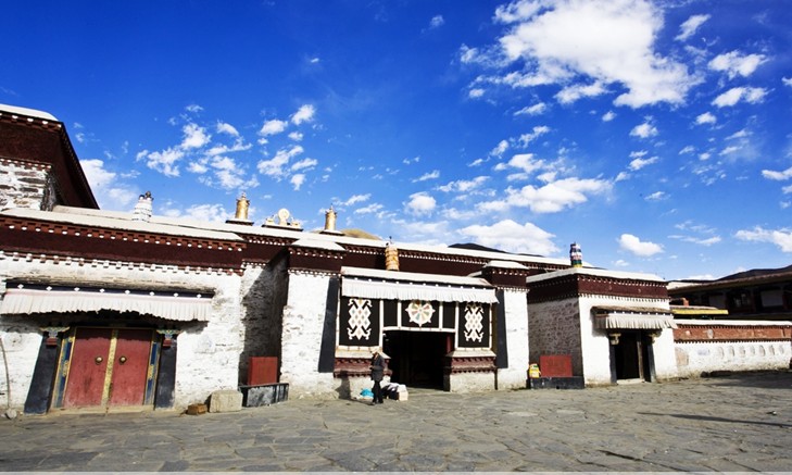 ?。ǘ┪迨肋_賴時期曾對該寺作過較多修繕和增建,加蓋了大殿金頂、錯欽大殿門的門樓,除其底部留有少量原來建筑外,余皆五世達賴時期改建和增建。該寺前庭院南側(cè)的桑阿頗章也系其時的建筑。