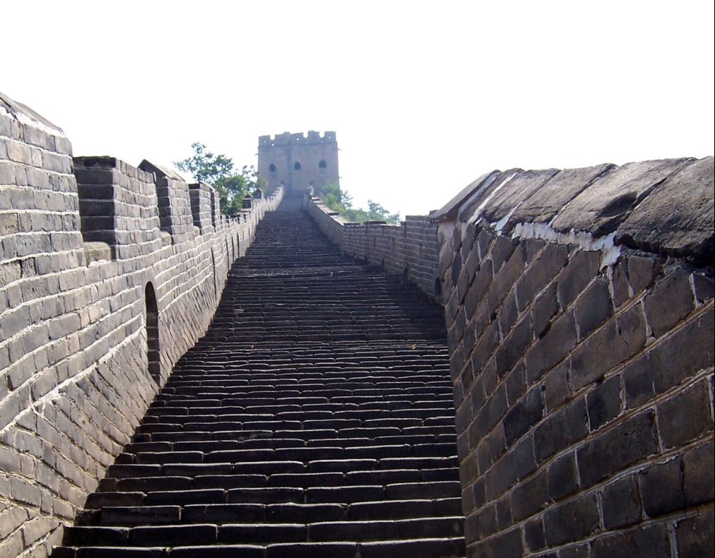 登上第六個(gè)敵樓,樓分上下兩層:上層是瞭望臺(tái);下層是成邊將士住房,三面有窗,北邊是射箭孔。整個(gè)樓用大方石塊砌成,顯得墩實(shí)、堅(jiān)固,氣度不凡長(zhǎng)城的最高處為,需登“天梯”而上。天梯高達(dá)100米,坡度85度,幾近垂直,無(wú)膽量的絕難征服。仰頭上望,那磚石砌就的臺(tái)階僅可容腳,兩側(cè)懸崖陡壁,中間這一道臺(tái)階細(xì)如線,薄如刃,陡如立。