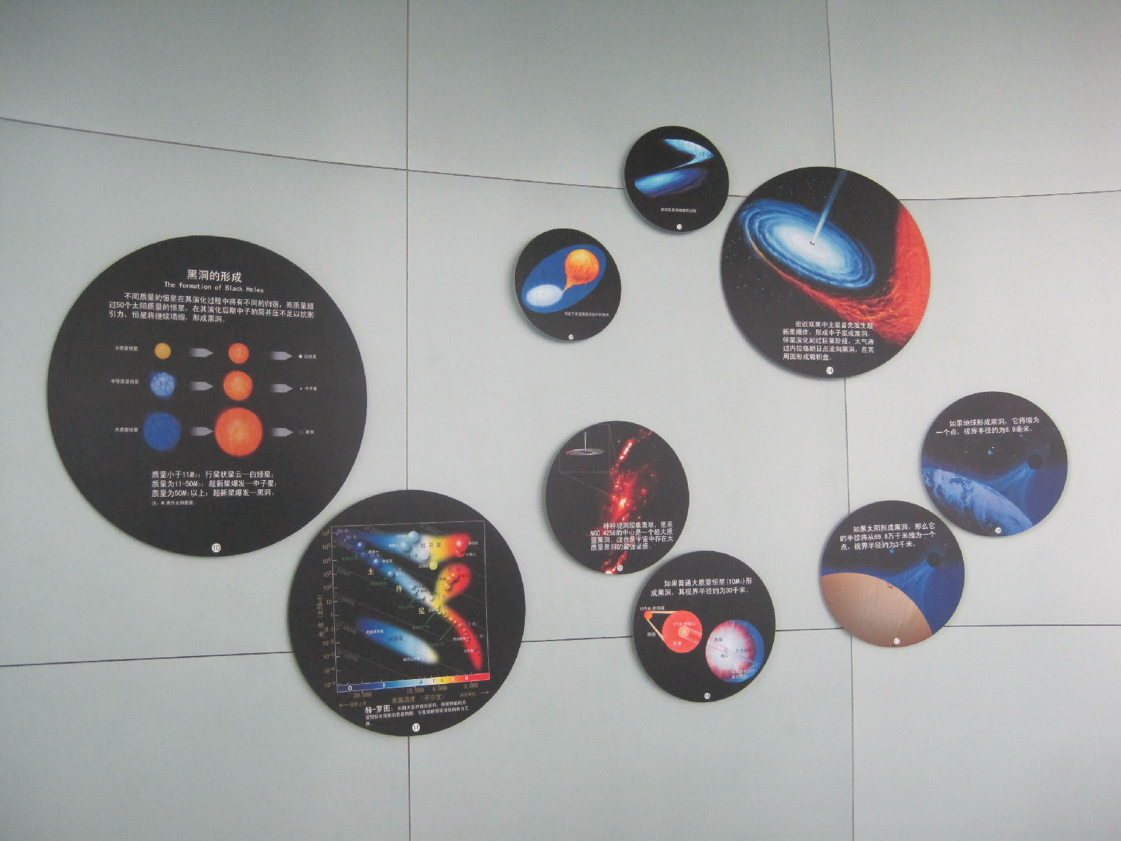 太陽展示廳,展覽面積300米,以展出太陽和太陽系內(nèi)容為主。主要展項(xiàng)內(nèi)容有從太陽真空望遠(yuǎn)鏡觀測接收而來的1.8米太陽白光投影像;174毫米手描太陽黑子白光全日面投影像;艷麗多彩的太陽光譜投影像;太陽白光、太陽色球全日面和太陽局部活動區(qū)的CCD電視圖象等。北京天文館設(shè)施包括天象廳,門廳,展覽廳,報告廳,天文臺等。北京天文館是中國乃至亞洲大陸的第一座大型天文館,目前仍是大陸唯一的大型專業(yè)天文館。2004年12月12日,北京天文館新館落成,設(shè)施包括數(shù)字宇宙劇場,3D影院 ,4D影院,太陽展廳等。