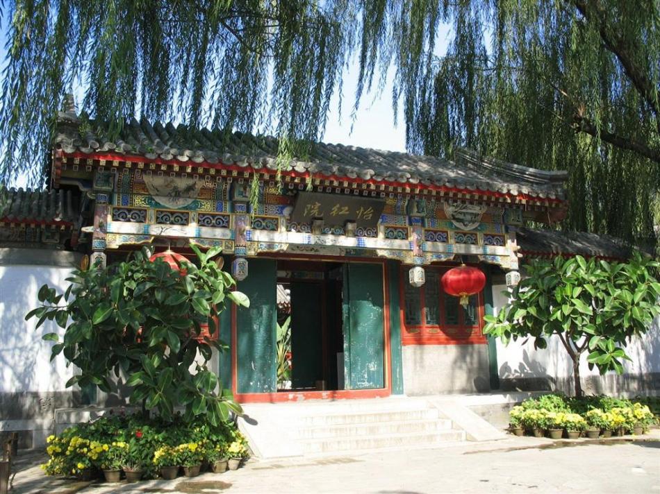 大概是取“以紅為怡,以綠為快”之意。門內(nèi)額書“青埂神瑛”,有人傳“青埂”諧音“情根”,“瑛”則是美石,暗諭多情種子賈寶玉。庭院中種植了一棵有五百年樹齡的羅漢松,暗寓主人出家當(dāng)和尚的命運。