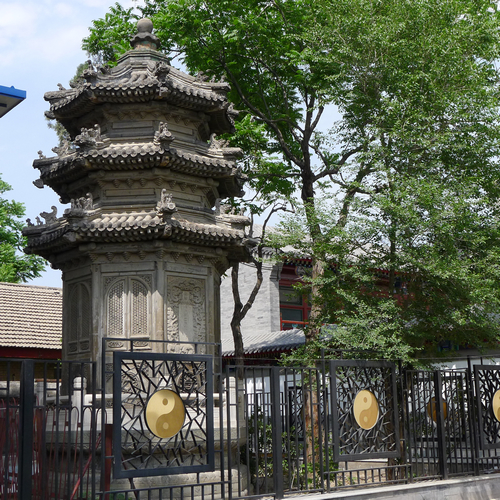 位于東北角塔院內(nèi),造型為八角形,三蹭磚石結(jié)構(gòu)。原塔前還有供奉羅公像的“羅公前殿”和“白云觀重修碑”、“羅真人道行碑”、“粥場碑記”、“云溪方丈功德碑”四塊石碑,現(xiàn)僅存羅公塔。 羅公為江西人,康熙年間來京,常住白云觀,雍正五年(1727)年逝世,被雍正帝敕封為“恬淡守一真人”。民間傳說羅真人創(chuàng)造了剃頭理發(fā)的工具和按摩術(shù),傳入皇宮后得到雍正帝的贊賞,舊時理發(fā)行業(yè)尊奉羅真人為祖師爺。