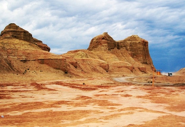 克拉瑪依市北行100公里,在烏爾禾鄉(xiāng)東南三公里,有一處獨(dú)特的風(fēng)蝕地貌,定名為風(fēng)城,人們習(xí)慣稱它為 “魔鬼城”。“魔鬼城”是一片雅丹地貌,面積10平方公里,地面海拔350米左右。