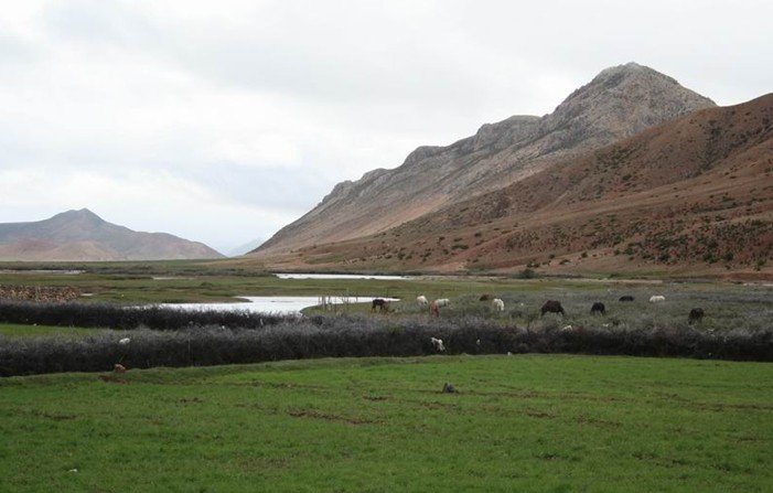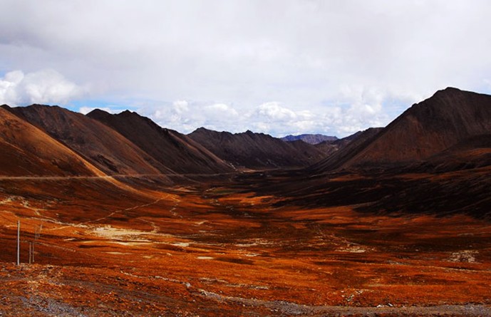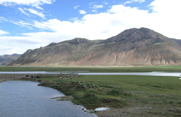 位處昌都地區(qū)三江流域之高山深谷中的邦達(dá)草原是一塊地勢(shì)寬緩、水草豐美的高寒草原。怒江支流玉曲上游蜿蜒流淌其中,兩岸廣闊的低濕灘地上生長(zhǎng)著茂密低矮的大蒿草、苔草之類(lèi)的草甸植物,綠茵如氈,除成群牛羊在那里游蕩覓食外,偶爾也會(huì)有一些藏原羚出沒(méi)于其間。圖上所示為冬季時(shí)節(jié)的邦達(dá)草原,牧草已趨枯黃,顯得有點(diǎn)蕭索荒涼,缺少些許生機(jī)。然而因位處西藏東部,降水稍多于西藏中西部地區(qū),牧草生長(zhǎng)狀況較好,這里是西藏境內(nèi)較為優(yōu)良的天然草場(chǎng),畜牧業(yè)比較發(fā)達(dá)。