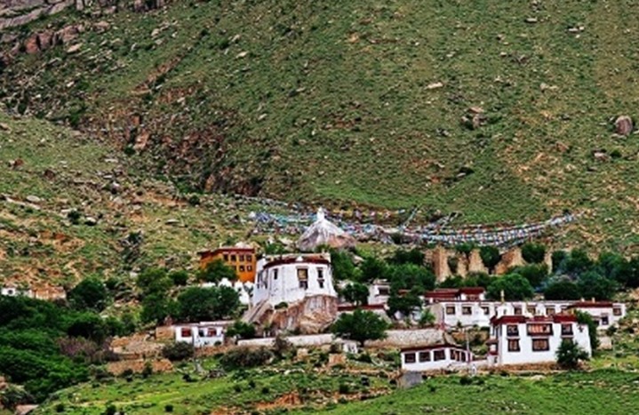同卡寺全稱(chēng)為學(xué)呢八宿嘎登桑珠林寺,俗稱(chēng)同卡寺。它位于八宿營(yíng)縣同卡鄉(xiāng)政府所在地,離縣城250公里,通公路。該寺是由洛巴•江村生格于公元1473年創(chuàng)建的,為功德林拉讓?zhuān)ㄎ鞑卣當(dāng)z政之一)所屬的一座寺廟。