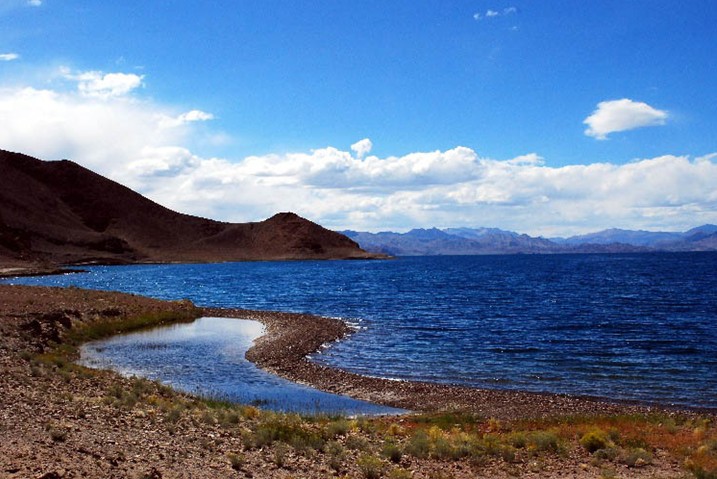班公湖又稱錯木昂拉紅波,藏語意為“長脖子天鵝”,有世界上海拔最高的鳥島,位于阿里地區(qū)日土縣城西北約12公里處,是中國日土縣與克什米爾交界的國際性湖泊,呈東西走向,長約155公里,南北寬約15公里,最窄處僅五米。湖面海拔4240米,水深57米,流域面積為28714平方公里。班公湖為內(nèi)陸湖,湖水東淡西咸,位于日土縣境內(nèi)為淡水,西部與克什米爾交界處為咸水