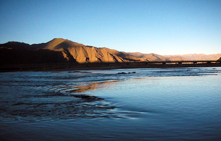 世界最高的大河,雅魯藏布江是西藏第一大河。它像一條銀色蛟龍,從海拔6000米以上的喜馬拉雅山中段北坡發(fā)源,由西向東奔流于西藏高原南部著名的“藏南谷地”。流到東經(jīng)95°左右,它橫穿喜馬拉雅山,突然爭轉向南,形成有名的“雅魯藏布江大拐彎”。最后在喜馬拉雅東端珞渝地區(qū)的巴昔卡附近流出國境,并改稱布拉馬普特拉河,經(jīng)印度、孟加拉國注入印度洋的孟加拉灣。