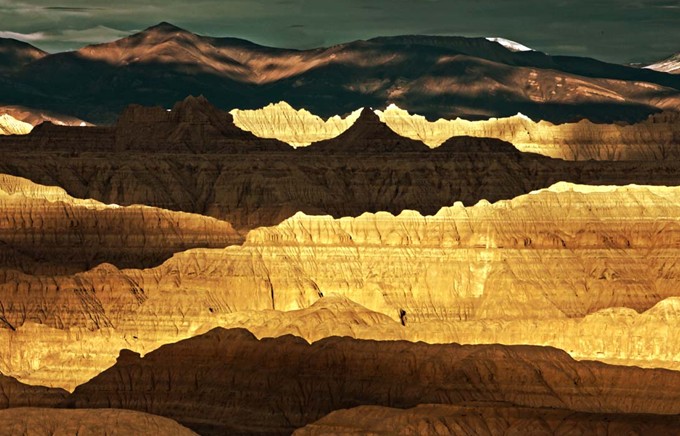 遠遠望去,滿眼的金碧輝煌;在高原迷幻光影的襯托下,宛若神話世界。近前觀瞧,便會看到象泉河兩岸土林環(huán)繞,道不盡天工巧奪。那舉世所無的奇觀,像莊嚴宏偉的廟宇,像壁壘森嚴的碉樓,像恢弘高聳的佛塔,像極盡豪華的古代宮殿,像古樸威嚴的歐式城堡,也有的或如萬馬奔騰、昂首嘯天,或如教徒修行、虔誠靜坐,天工萬象,無可盡數(shù)。