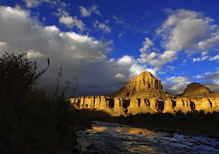 土林是西藏最為壯麗的景觀之一,在地貌學上稱為“水平宕層地貌”,是經過流水侵蝕形成的比較特殊的決生松造地貌。結構致密而堅實的砂巖和礫巖常常構成粘土巖的保護層,或平鋪于巖壁的頂部,或突出于巖壁之上,與軟巖層次交互組成。那高而平的山頂被縱向切割侵蝕成一條條深深的溝壑。晚霞下那一座座山峰連成的“林海”十分壯觀,真是“橫看成嶺側成峰,遠近高低各不同”。這種奇特神秘的地貌依山環(huán)繞,遍布了整個札達縣。據說,藏族先民們就是利用“土林”這一自然資源掘洞而居,才建立起雄偉的古格王國的。