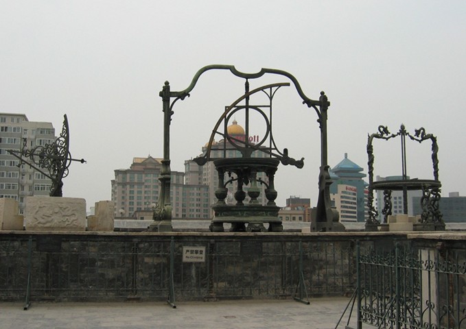1900年八國聯(lián)軍侵入北京,德、法兩國侵略者曾把這8件儀器連同臺下的渾儀、簡儀平分,各劫走5件。法國將儀器運至法國駐華大使館,后在1902年歸還。德國則將儀器運至波茨坦離宮展出,在第一次世界大戰(zhàn)后,根據(jù)凡爾賽和約規(guī)定,于1921年裝運回國,重新安置在觀象臺上。