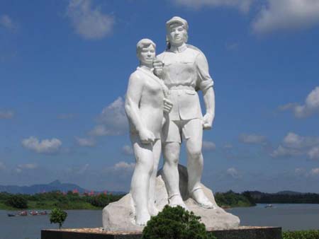 位于瓊海市南門的街心公園,于1985年8月1日落成揭幕。雕像由花崗石雕刻而成,坐北向南,高3.7米,連底座總高6.8米。座基石板鋪設,四周呈六角形,圍以石欄桿,占地面積40平方米。雕像后面是園林花圃等。紅色娘子軍紀念雕像將紅軍女戰(zhàn)士腳穿草鞋、肩背竹笠、風塵仆仆的一代巾幗英雄的氣概充分展現(xiàn)。雕像底座正面有胡耀邦金字題詞:“紅色娘子軍”。底座背面刻有如下文字:“紅色娘子軍即中國工農(nóng)紅軍第二獨立師女子軍特務連。”1931年5月1日創(chuàng)建于樂會縣第四區(qū)革命根據(jù)地。她們在中共瓊崖特委領導下,出色地完成了保衛(wèi)領導機關,宣傳發(fā)動群眾等項任務,并配合主力部隊作戰(zhàn),在伏擊沙帽嶺、火攻文市炮樓、拔除陽江據(jù)點及馬鞍嶺阻擊戰(zhàn)斗中,不怕犧牲,英勇殺敵,為瓊崖革命立下功勛,斯為婦女解放運動之旗幟,海南人民之光榮,娘子軍革命精神永存!”。1990年,海南省人民政府確定紅色娘子軍雕像為重點革命紀念建筑物保護單位。