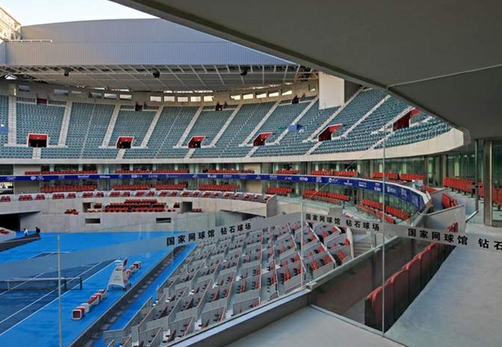 網(wǎng)球中心建設負責人孫彥朝說,網(wǎng)球中心設計時保留了“清水混凝土”的本色,不加任何裝飾,很好地與森林公園的綠色映襯起來,效果非常漂亮。