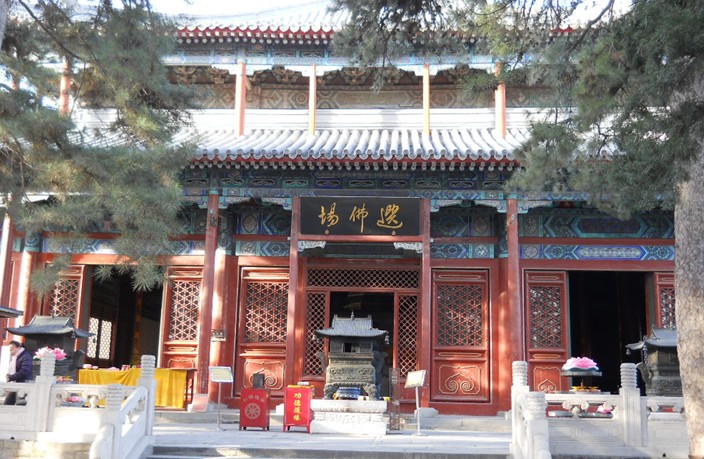 寺院西路大多是寺院式的殿堂,主要建筑有戒壇、觀音殿和龍王殿等等,一層層排列,瑰麗堂皇。戒壇是和尚們受戒之處,臺上有釋迦牟尼像,像前有三把椅子,兩側各有一長凳,是三師七證的坐處;觀音殿是全寺最高處,上有乾隆手書蓮界慈航,內供觀世音菩薩,斂目合什,雋秀端莊。