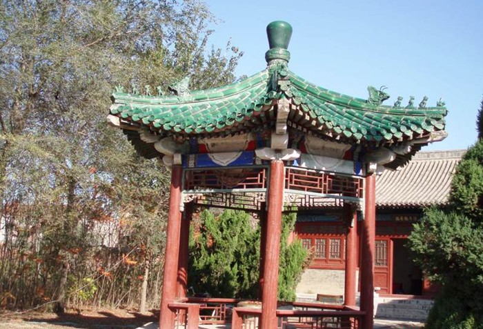 寶云寺內(nèi)有一塔,高36.5米,塔體為八面棱錐體磚木結(jié)構(gòu),自四層以上四面有門,塔的各層建筑風(fēng)格各異,或成鴛鴦斗拱,或成梅花斗拱,雄渾古樸,氣勢(shì)磅礴。若登塔頂,需有一定的勇氣,因?yàn)槊康且粚佣家@塔沿半圈,找到另一側(cè)的入口。