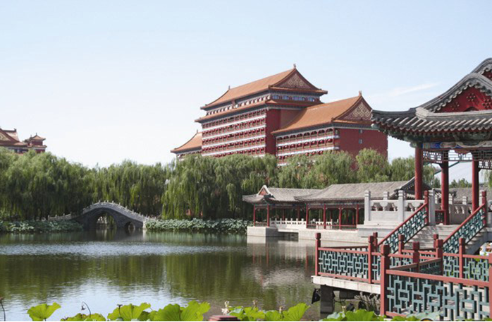 它外仿明清時期北京都城的城垣風(fēng)貌,采用“縮地不縮景”的方式,按照1:1的比例復(fù)原了老北京“內(nèi)九外七”的城垣格局。由周邊5公里的空腹城墻、22座錯落有致的城樓、具有濃郁中國傳統(tǒng)文化風(fēng)格的建筑群和獨(dú)具匠心的皇家園林組成的景園內(nèi),建有設(shè)施完備的大型現(xiàn)代化國際會展中心、五座建筑風(fēng)格各異的星級酒店;外城東區(qū)為圓明勝景區(qū),樓、臺、亭、榭體現(xiàn)了中式皇家園林的風(fēng)范;外城西區(qū)以王府、四合院為代表的古城春色區(qū)盡顯六朝古都的宅府風(fēng)貌;前門商業(yè)街坐落在兩區(qū)之間,崇文門的西部為康體健身中心;宣武門被大型的嬉水樂園所簇?fù)?;古色古香的正安宮大酒店是第一城的標(biāo)志性建筑。中華佛教藝術(shù)博物院、金色藝術(shù)大廳、高爾夫草坪式花園構(gòu)成了第一城千姿百態(tài)的多種畫卷。版權(quán)所有山東聊城聊之旅國際旅行社有限公司,轉(zhuǎn)載必究!整體風(fēng)格盡現(xiàn)華夏古今文化之精華、神州民族建筑之異彩,是傳統(tǒng)美學(xué)與現(xiàn)代建筑技術(shù)的完美結(jié)合。