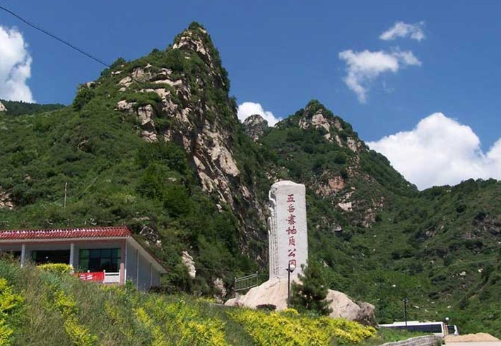 本區(qū)在地質(zhì)構(gòu)造上屬于華北古陸太行山中段東麓,區(qū)內(nèi)廣泛出露中、下元古界變質(zhì)巖系,其巖性主要為片麻巖、變粒巖、角閃片巖、斑狀花崗巖等。由于新生代喜馬拉雅運動的強烈抬升和差異斷塊活動。造成了平的華北平原(海拔幾十米)與高聳的太行山的強烈對比,形成了一系列相對高差較大的陡峭山峰,本公園就處在由古老變質(zhì)巖基礎(chǔ)上發(fā)育起來的斷塊中山地區(qū),海拔1000-2150米,由于斷塊構(gòu)造形成了景區(qū)內(nèi)山地溝深坡陡、山勢雄奇險秀,峽谷多而幽險。五岳寨主峰呈五峰獨立之勢,如一組巨大的盆景被太行山當(dāng)胸托起。主峰1946.5米,最低峰亦1880米以上。山勢陡峻、雄險,東南側(cè)陡崖壁立,直垂谷地深達數(shù)百米。僅十幾平方米的頂峰巖石平臺,三面臨萬丈絕壁、奇險無比。站在峰頂極目四望,蒼茫中天地一色,千山萬嶺盡收眼底,讓人真正體會到“會當(dāng)凌絕頂,一覽眾山小”的境界。五岳寨地質(zhì)資源豐富,山形地貌奇特,猴頭峰、石駝峰、鴛鴦石、將軍石等許多山峰奇形怪狀,擬人似獸、栩栩如生。