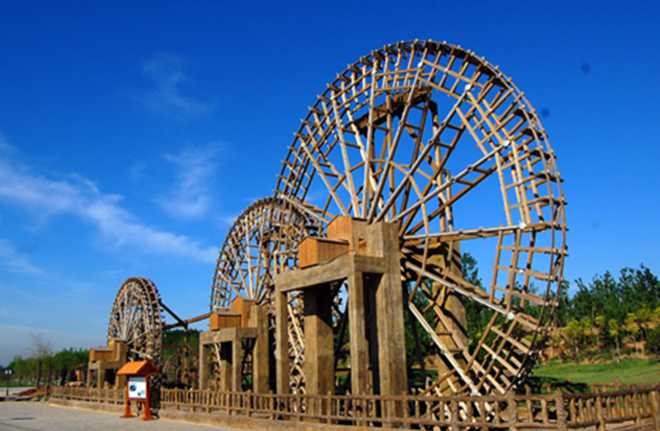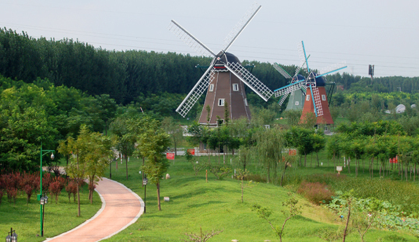 景觀建設(shè)包括親水、雕塑和配套三大部分,其中最具特色的為“一鐵塔、二雕塑、三風(fēng)車(chē)、四水車(chē)”等大型作品。“一鐵塔”,即觀摩塔,主體高49米,總高60米,為慶祝建國(guó)60周年設(shè)計(jì)打造;“二雕塑”,即嫦娥奔月、后羿射日兩個(gè)極具地方文化內(nèi)涵的雕塑;“三風(fēng)車(chē)”,建設(shè)中西文化相結(jié)合的三座大型原生態(tài)風(fēng)車(chē);“四水車(chē)”,建設(shè)四座原生態(tài)水車(chē)群體。