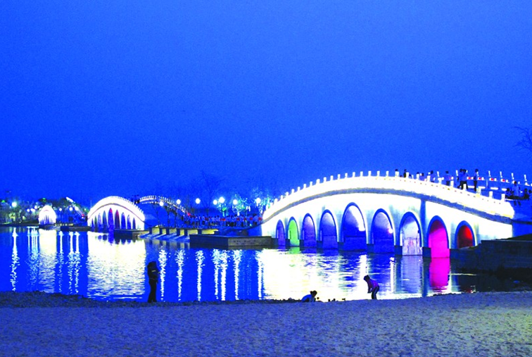 清風湖公園占地2690畝,湖面水體面積1200畝,以黃河文化為主題,在建設(shè)風格上,吸收借鑒了西方園林和中國古典園林的設(shè)計手法,力求中西合璧,用現(xiàn)代手法來表現(xiàn)傳統(tǒng)建筑。