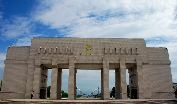 新世紀門坐落在中心廣場南側(cè),寬度為40米,高度為16米。新世紀門既可作為市委、市政府綜合辦公樓的屏風,又可作為廣場南面勝利路的底景,中心廣場鋪裝及綠化占地3.2萬平方米,其中綠地1.28萬平方米。綠地以冬綠型草為主,間接布置龍柏、月季、雪松、法桐等樹種,形成四季有花、四季青綠的效果。綠地內(nèi)設(shè)自動噴灌系統(tǒng)。