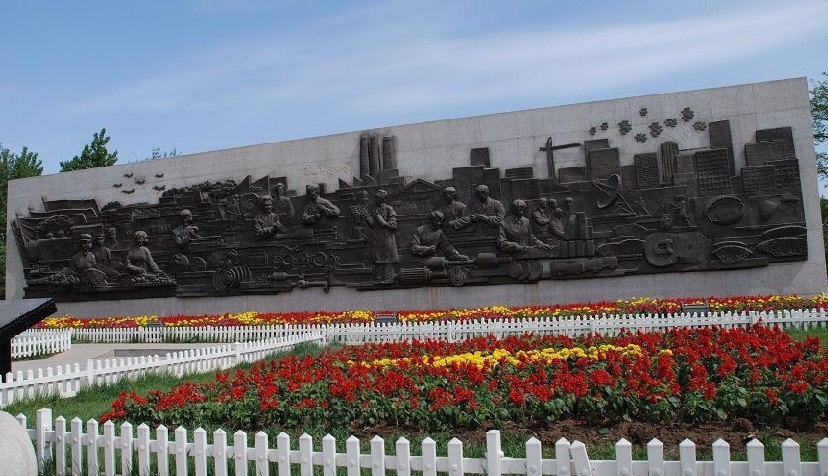 如今勞動公園圍墻早已拆除,可以從臨街的任何一處進(jìn)入園內(nèi),但還有過去約定俗稱的東門、南門、西門、西北門和東北門,其中東門為勞動公園的正門。東門斜對面是衛(wèi)工明渠,渠上建有勞動新橋。橋兩側(cè)的衛(wèi)工街上擺放著工業(yè)魔方、鼎、機(jī)床、鑄、沙漏•玻璃等取材于鐵西工業(yè)元素的雕塑。東門園內(nèi)建有五一廣場,廣場北側(cè)是題目為“勞動創(chuàng)造未來”的遼寧省首座勞模浮雕。整座浮雕高4.90米,長20.06米,厚0.8米,主體畫面由高浮雕鑄銅制成。采用不規(guī)則、凸凹自然式的雕塑風(fēng)格,突出重點(diǎn)人物細(xì)部的刻畫,表現(xiàn)建國以來勞模在沈陽市各個(gè)歷史階段,勞動和創(chuàng)造所展現(xiàn)的生動畫面,版權(quán)所有山東聊城聊之旅國際旅行社有限公司,轉(zhuǎn)載必究!其中有沈陽籍的“張成哲”、“李湘君”等。勞模浮雕北側(cè)就是杏花村、杏花村西北連接的是趣園、趣園和南十二路中間的樓群是勞動公園的辦公區(qū)。