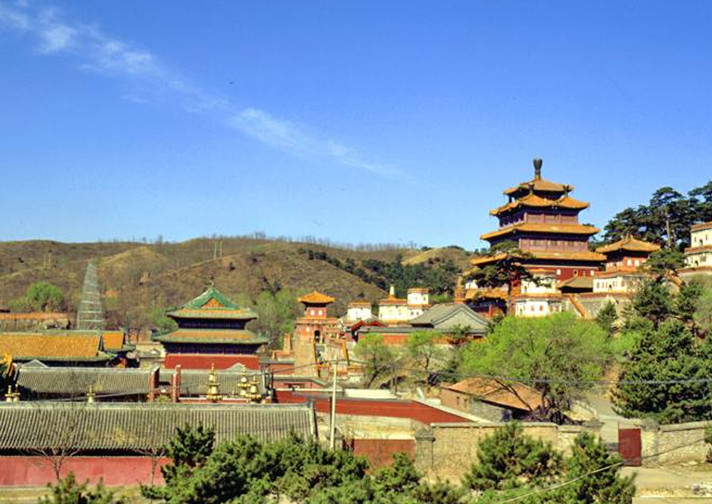 乾隆三十二年建普陀宗乘之廟,作為慶祝乾隆皇帝六十壽辰時(shí)蒙古和土爾扈特王公進(jìn)貢朝賀之所,普陀宗乘之廟仿藏式建筑修造,俗稱(chēng)“小布達(dá)拉宮”,西藏達(dá)賴?yán)锏綗岷佑P見(jiàn)時(shí)多居此處。