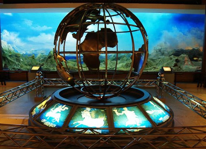 大連自然博物館的展覽是以“自然與人”為主題進(jìn)行設(shè)計(jì)的。當(dāng)觀眾步入館內(nèi)的陳列大廳時(shí),首先躍入眼前的是由肯尼斯•貝林先生于2003年捐贈的非洲象,肩高3.0米,體長約5.1米,尾長1.5米,體重約6000公斤。后面是一幅長22米,高3米的大型浮雕,他們將“自然與人”藝術(shù)而完美的融合在一起,氣勢宏大而壯觀,充分體現(xiàn)了濱城特色和陳列展示主題。