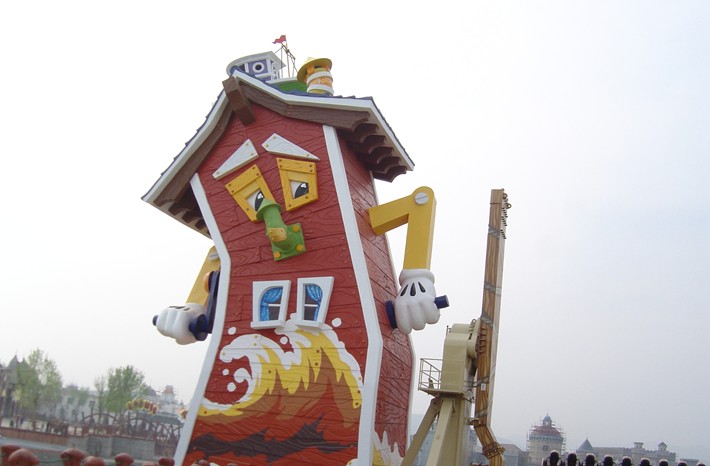 公園分為六大主題,右轉(zhuǎn)的話,先看到就是瘋狂小鎮(zhèn)了。這里有瘋狂劇場,在這里可以定時看到從外國請來的藝人表演的“瘋狂奪寶”,驚險的警匪對戰(zhàn),刺激的爆炸場面,有種身臨好萊塢大片其中的感覺。(建議看好時間表,游樂過后再來這里看場視覺盛宴);翻江倒海,絕對算的上是園中數(shù)一數(shù)二驚險的項目,這點可以從乘坐者的尖叫的分貝中體驗出來;其他的項目也都不錯,時間夠用的話就每樣都體驗一下。