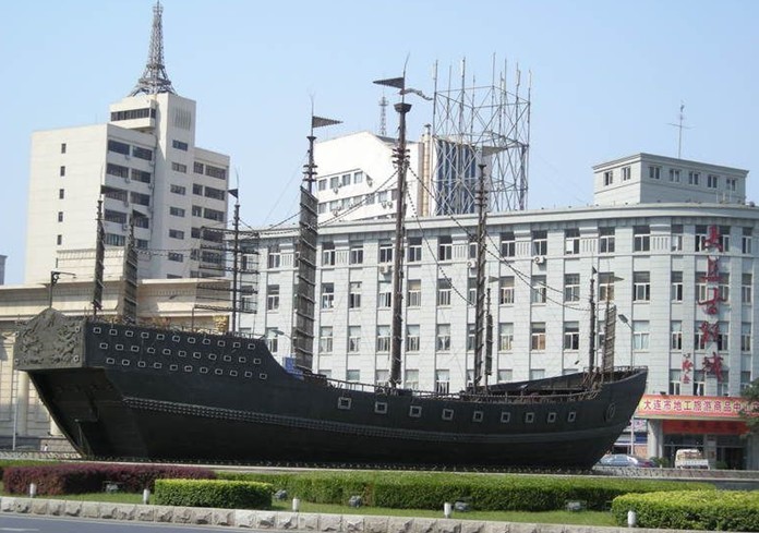 港灣廣場位于大連市中山區(qū)人民路西端的盡頭,是大連港客運碼頭前的交通廣場。港灣廣場占地面積1.5萬平方米,其中中心綠地面積5300平方米。廣場中間是銅制的鄭和下西洋的帆船模型,展現(xiàn)了中國古代的航海文明。廣場西北角是大連服裝交易市場和大連古玩交易市場。港灣廣場建設(shè)至今經(jīng)過了多次改造。